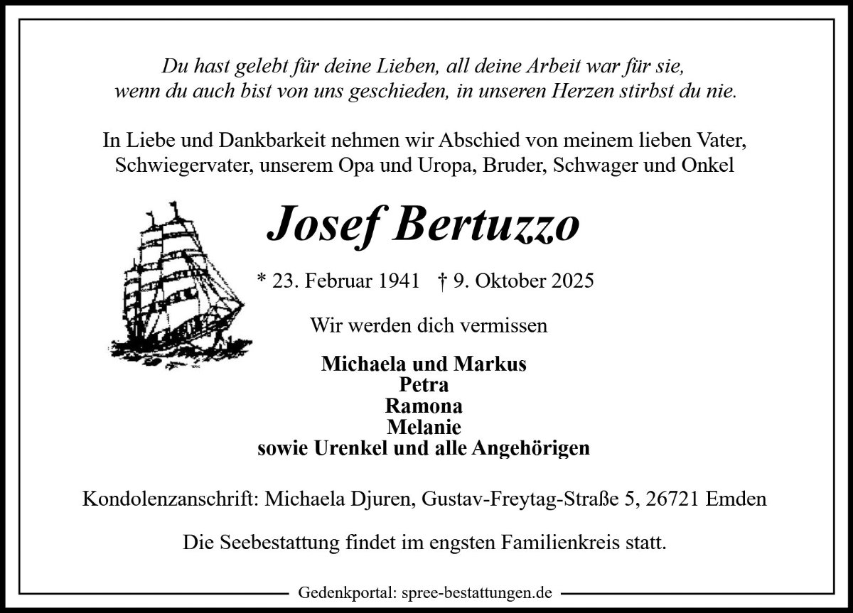 Josef Bertuzzogestorben am 9. Oktober 2025
